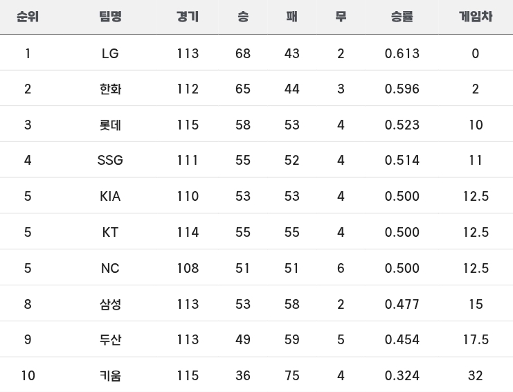 | 2025프로야구 정규시즌 잔여경기수 현재순위표 삼성라이온즈 5강 진입가능한가 (0) | 2025.08.29 |