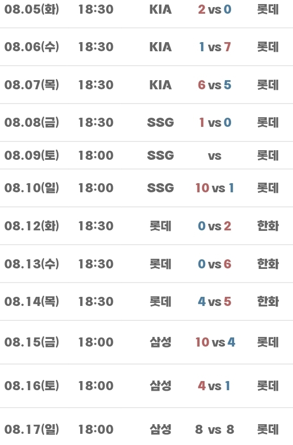 ⚾️ 롯데자이언츠 8월 경기일정